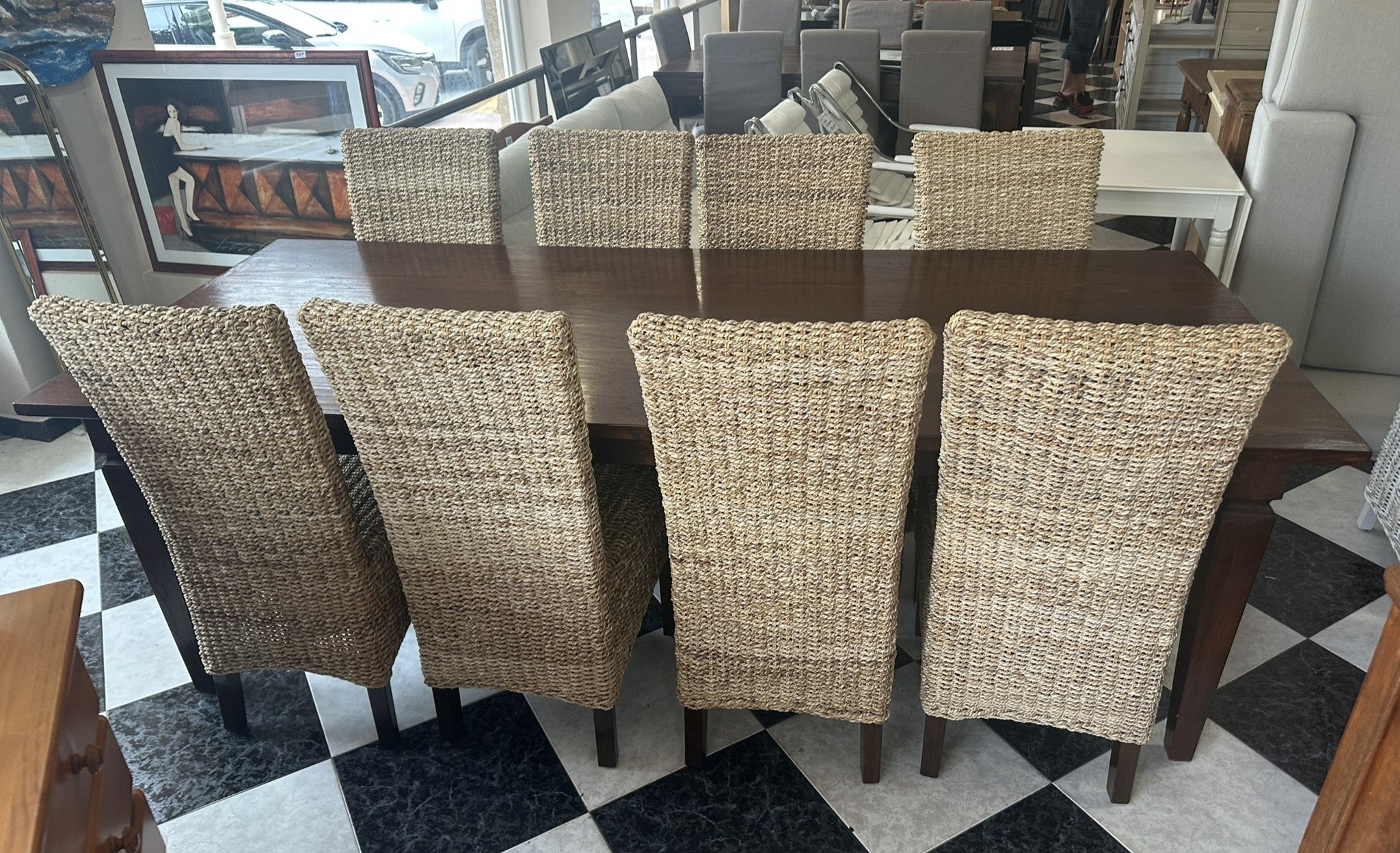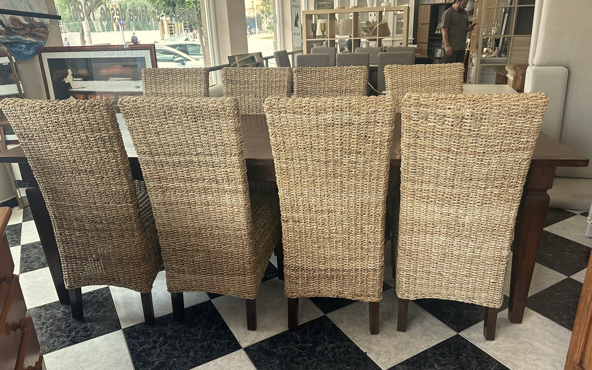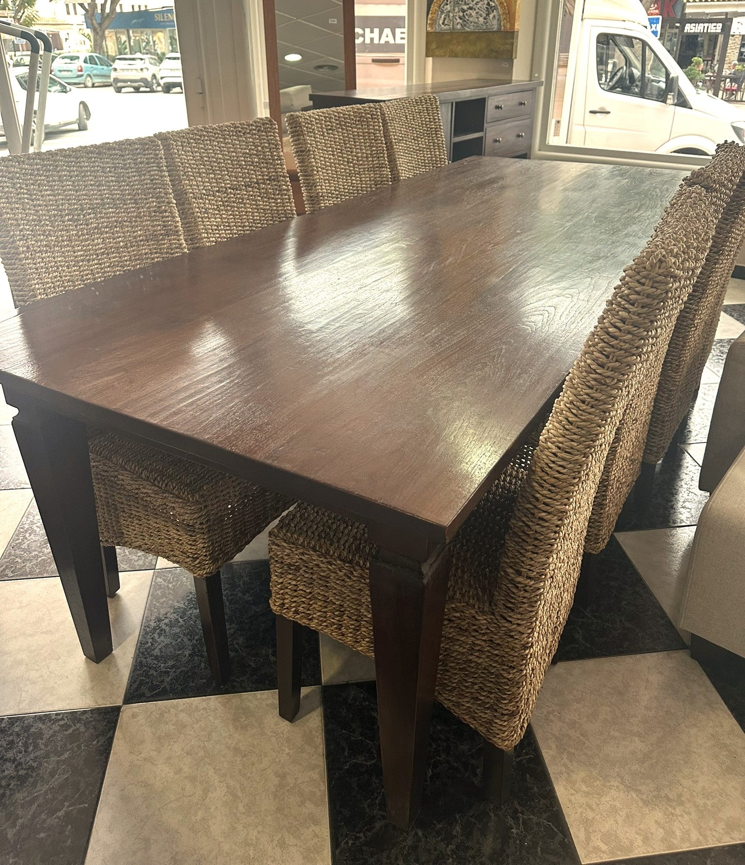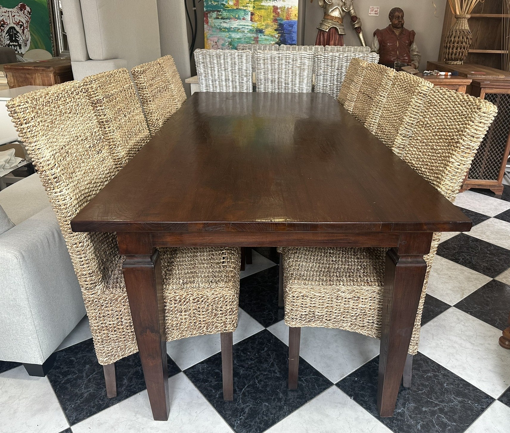 1000 - Fantastic LARGE (very long! 240cm! 240cm x 100cm) solid wooden table + 8 rattan chairs. All high quality and good condition! =865€ for the set!