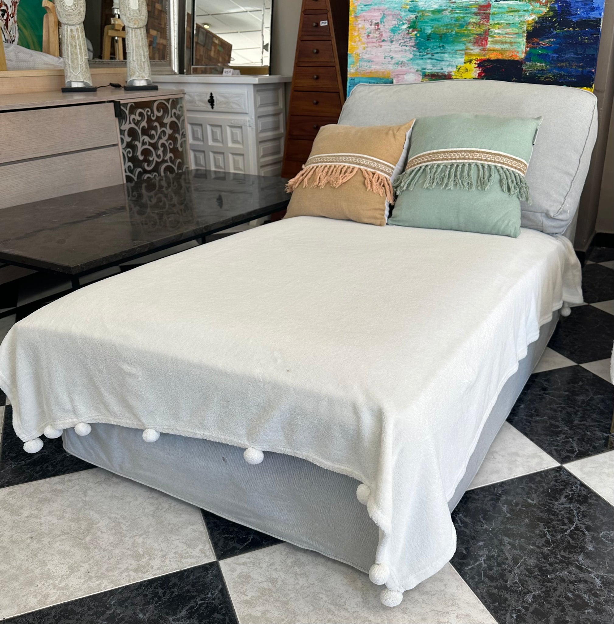 1003 - chaise lounge with throw and pillows. (165cm x 90cm)
