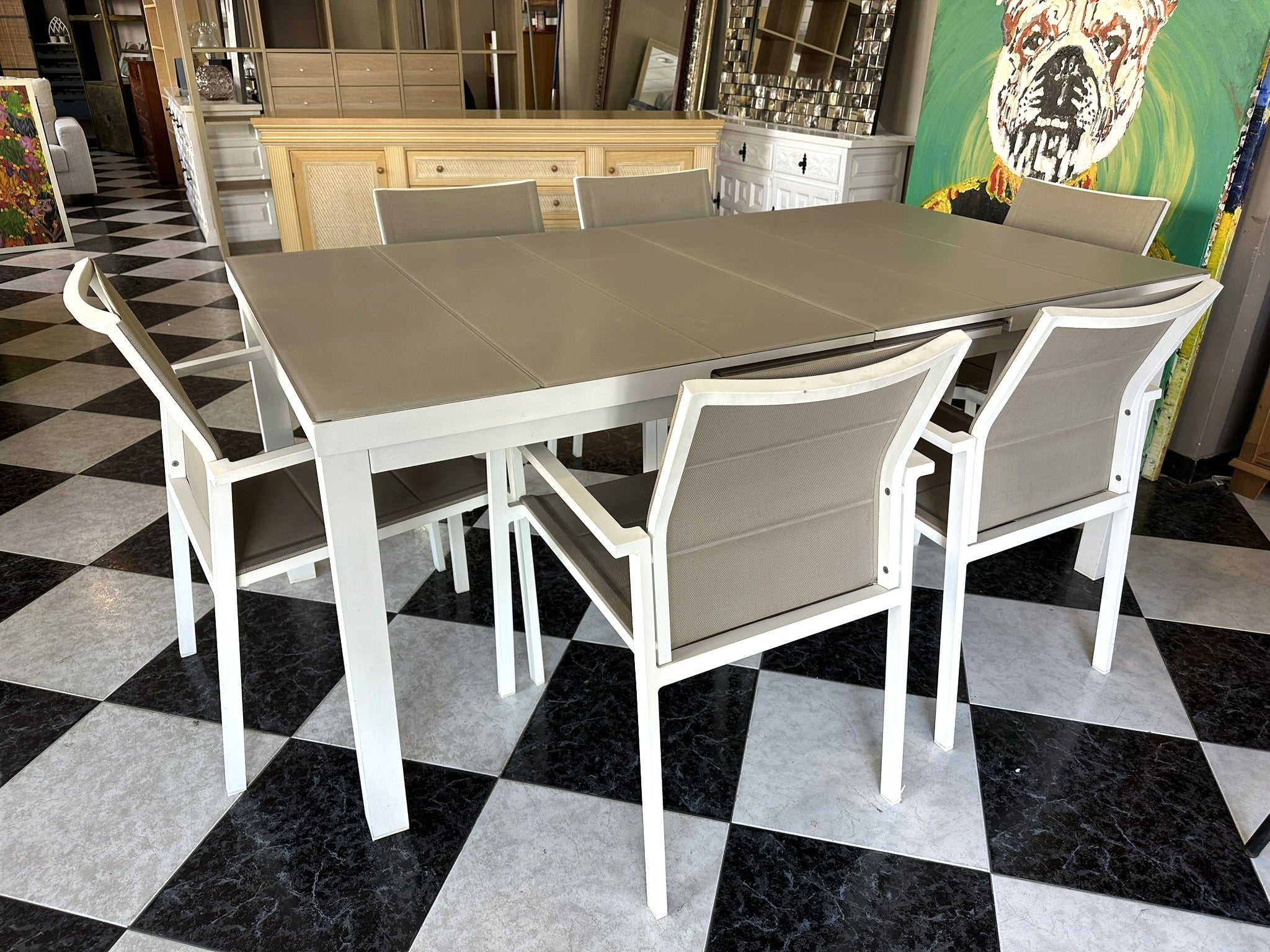1003 - High quality outdoor table with 6 chairs, all in good condition! (EXTENDS!! Non-extended as the photo is: 180cm x 100cm)