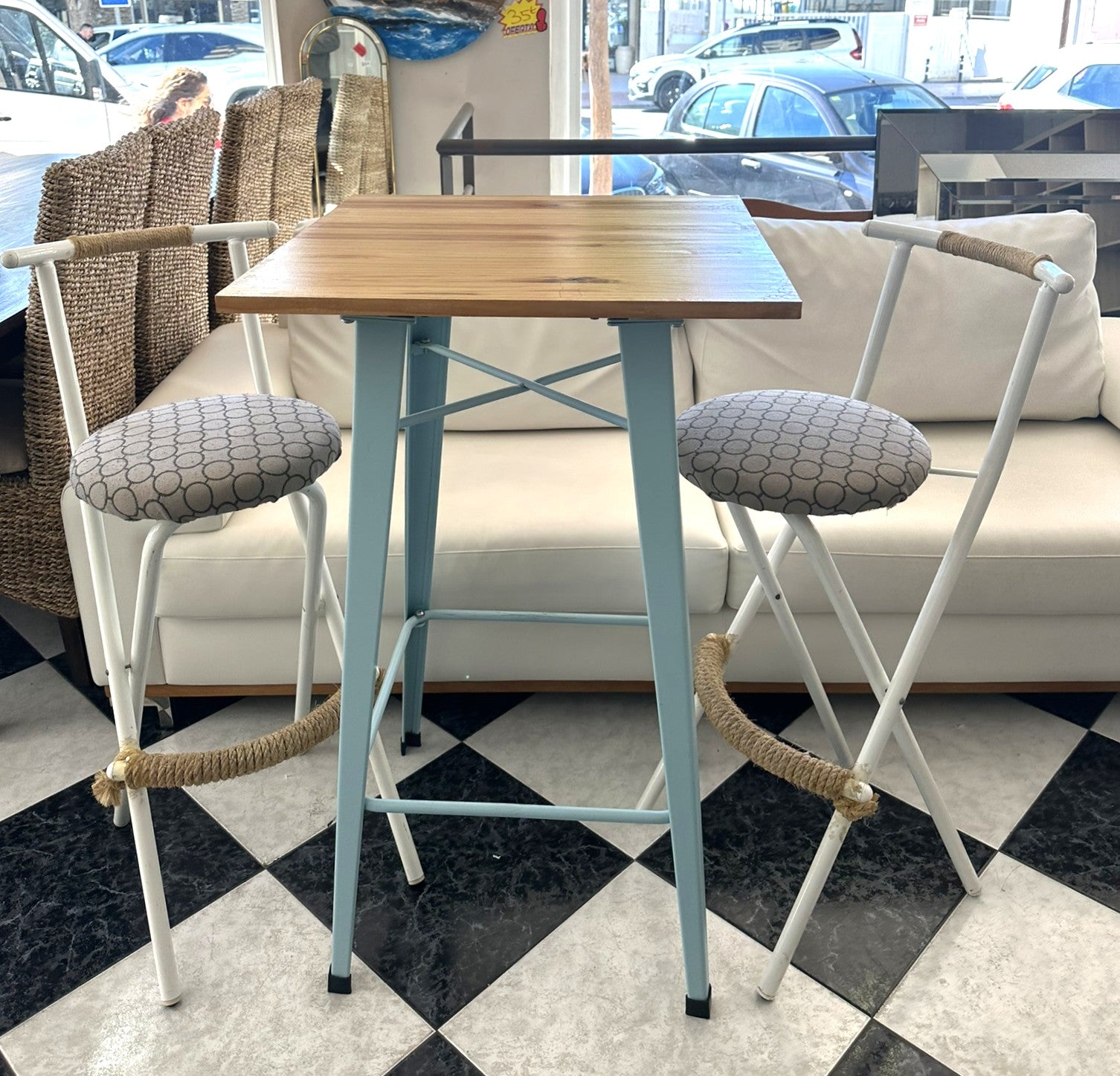 1058 - Bar table + 2 bar chairs.