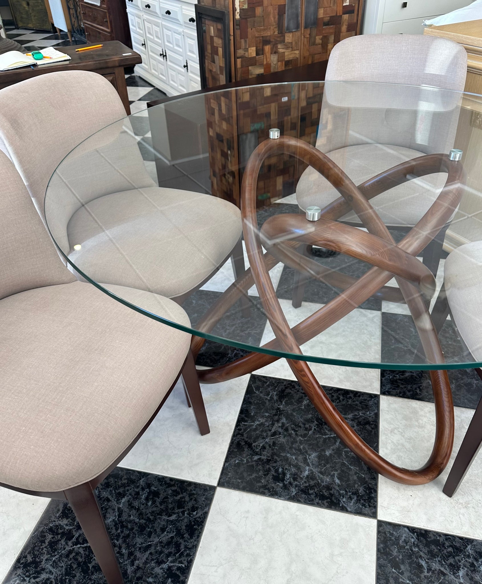 1005 - very nice round glass table (140cm) + 4 chairs.