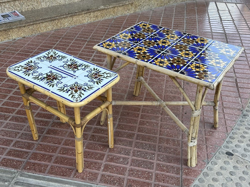1118 - Two small tiled tables (Left: 47cm x 33xnm 46cm high 35€ Right: 63cm x 48cm, 51cm high 45€)