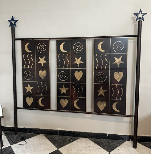 1066 - Heavy wrought iron headboard (Ex-display from our new beds store). (140cm wide, 117cm high) (New price 195€)