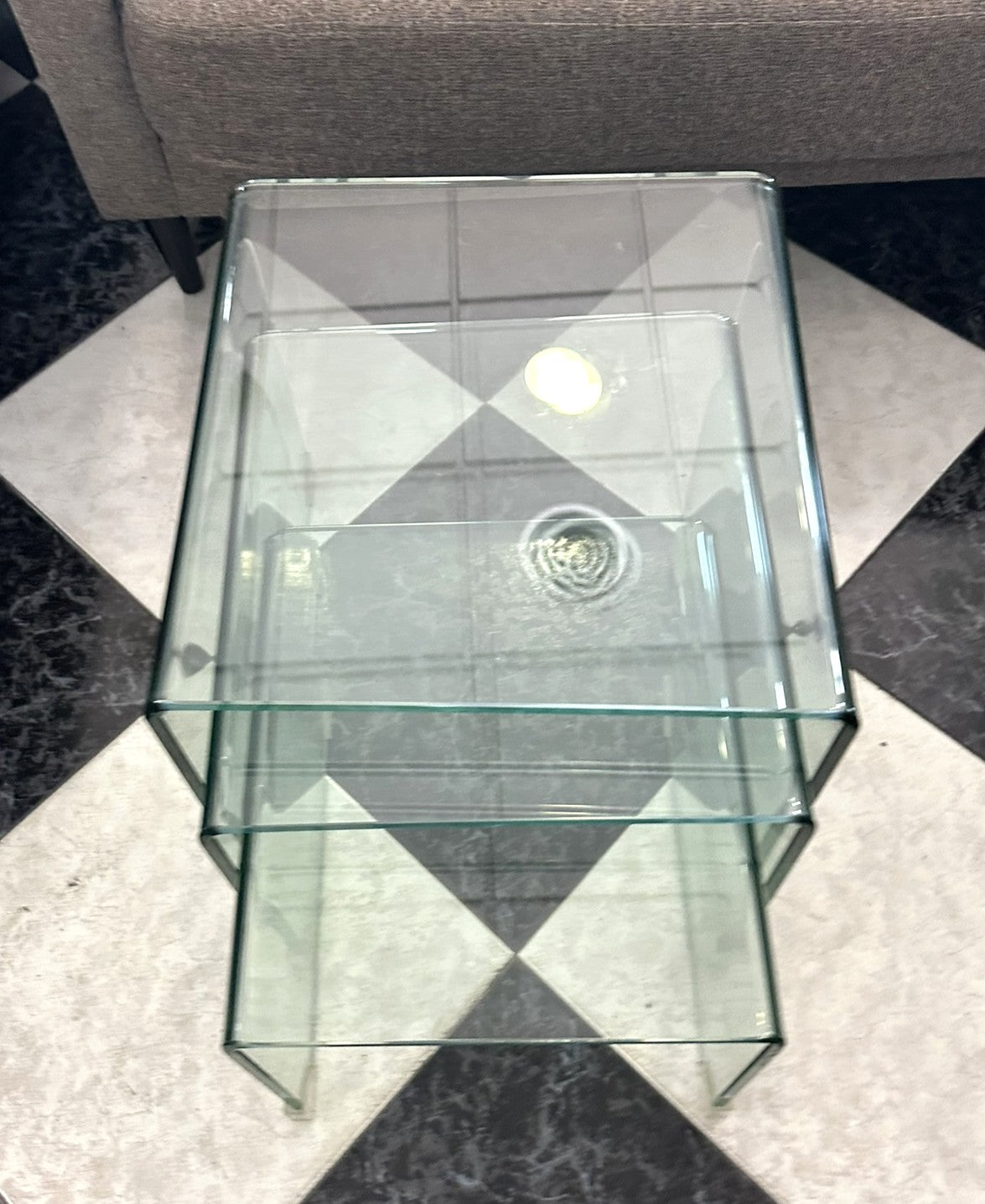 1041 - Glass nest of tables (biggest table: 45cm x 43cm, 41cm high)
