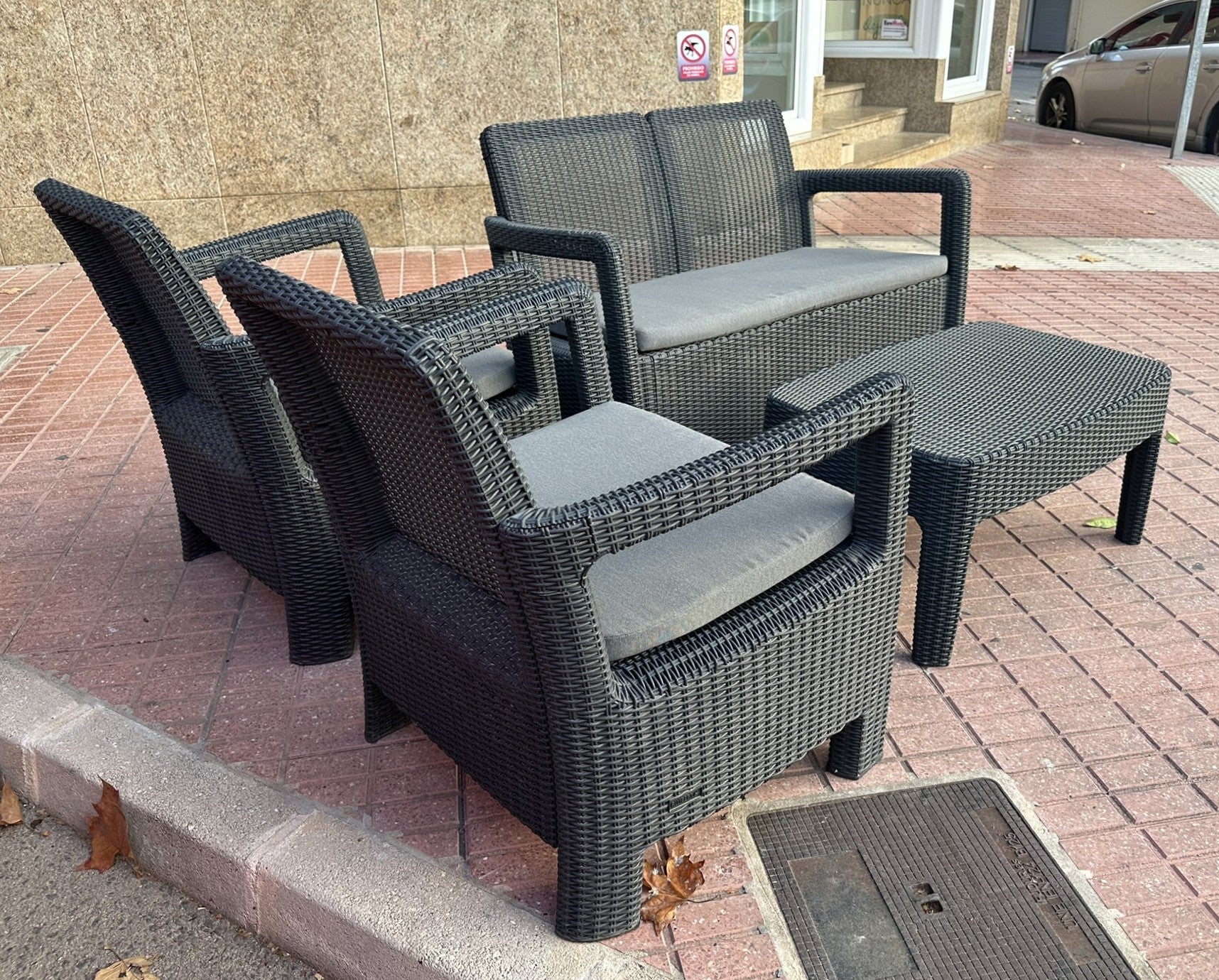 1012 - Rattan suite (sofa:120cm wide, chairs: each 70cm wide)