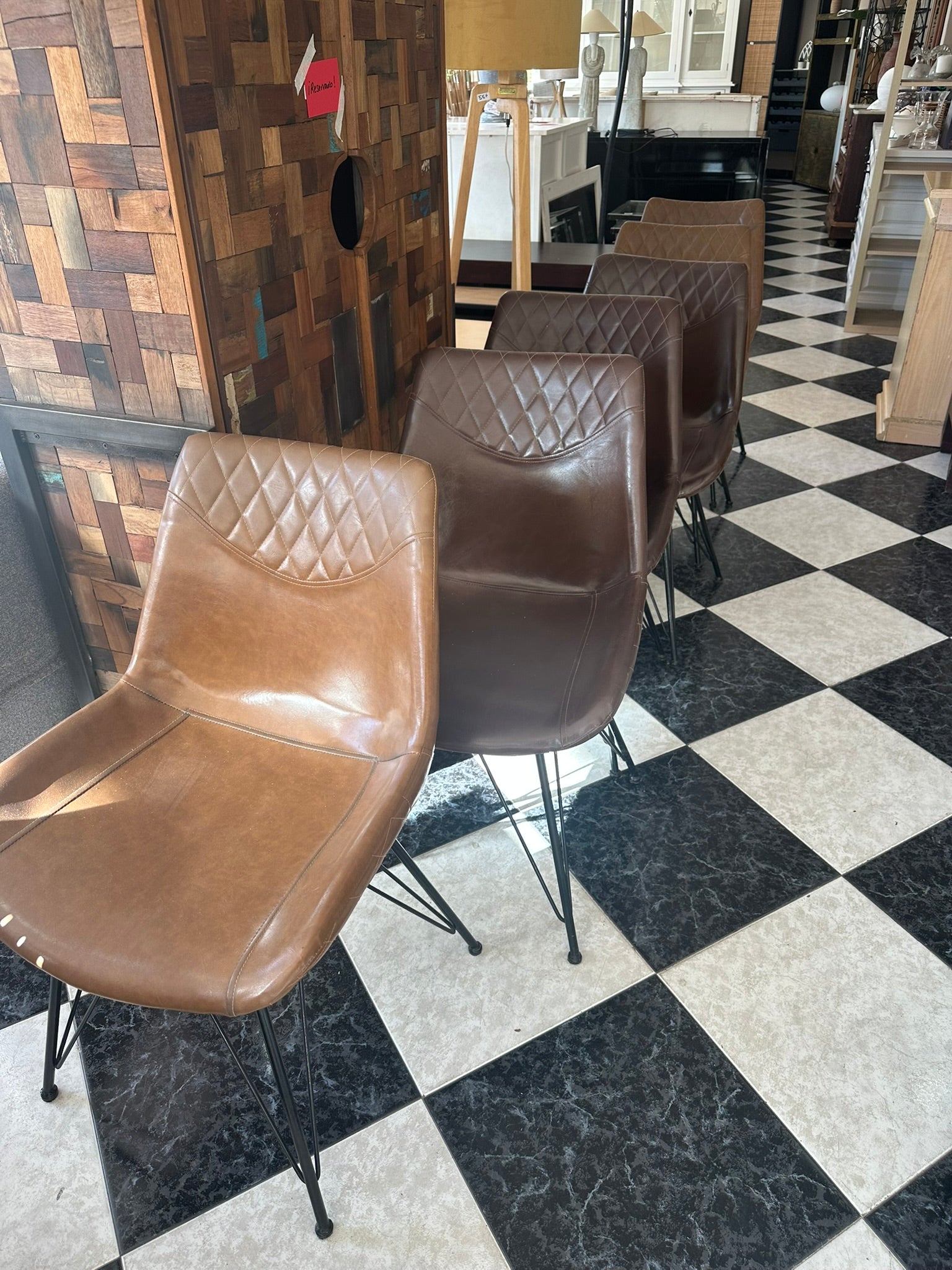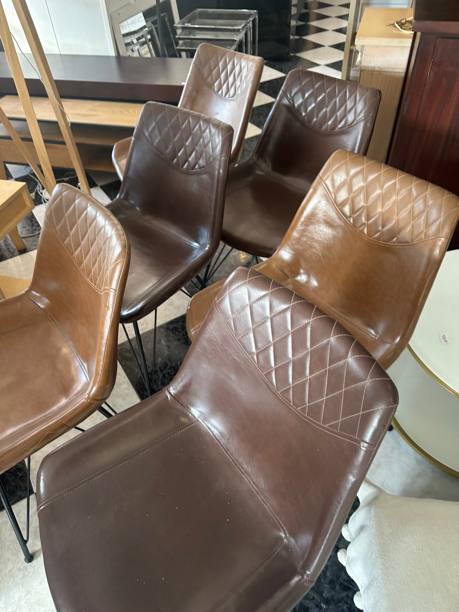 1046 - Set of 6 leather dining chairs in very good condition (3 lighter ones and 3 darker ones) 275€ for all 6