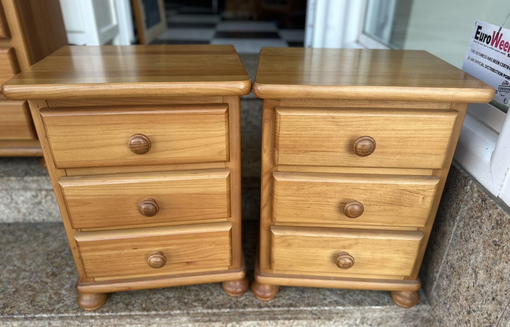 1147 - Pine bed side tables (40cm x 35cm, 53cm high( 85€ for both!