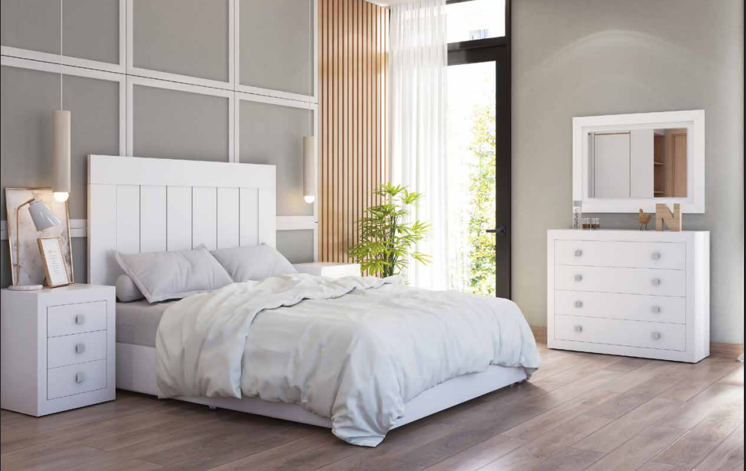 MW "Set no. 12" - 5 -piece wooden set - Chest of drawers (102cm x 40cm, 83cm high) + mirror (100cm x 80cm) + headboard (160cm wide, 120cm high)+ 2 x bedsides (59cm x 36cm, 62cm high)